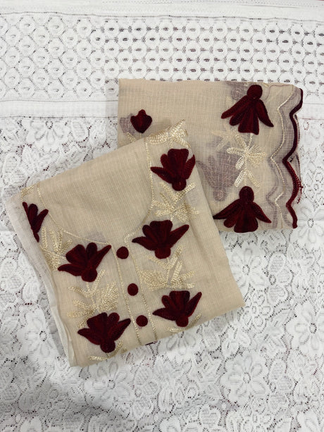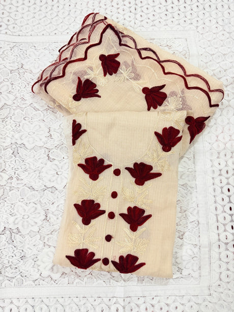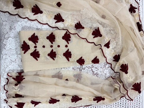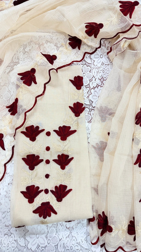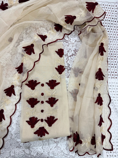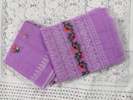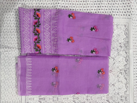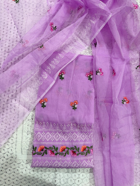 Lavender Cotton Kota Doria Unstitched Suit Set with Floral Embroidery | Elegant Party & Festive Wear