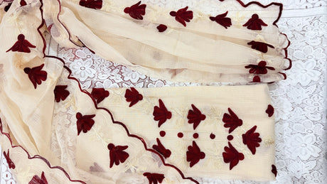 Orange Kota Doria Unstitched Suit with Heavy Zardozi Handwork – Kurta, Dupatta & Bottom Set