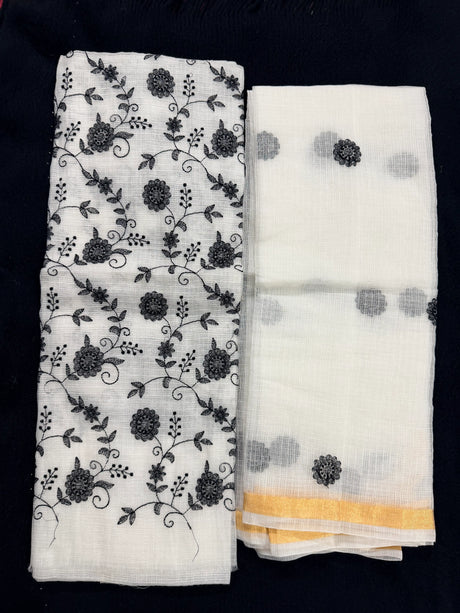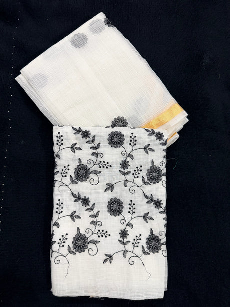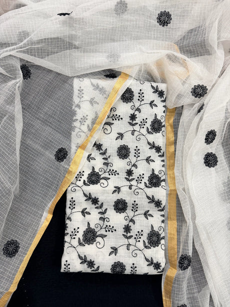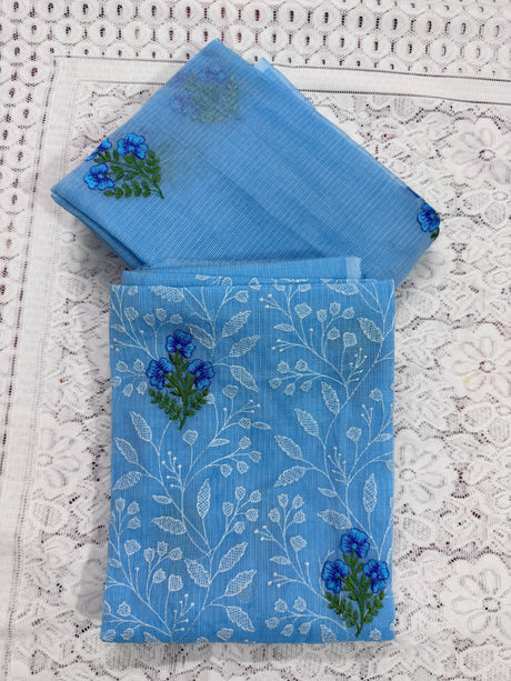 Sky Blue Cotton Kota Doria Unstitched Suit Set with Floral Embroidery | Elegant Party & Festive Wear