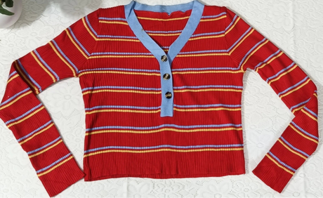 Pretty Graceful Women’s Red Striped Top – Stylish V-Neck Casual Tunic for Girls