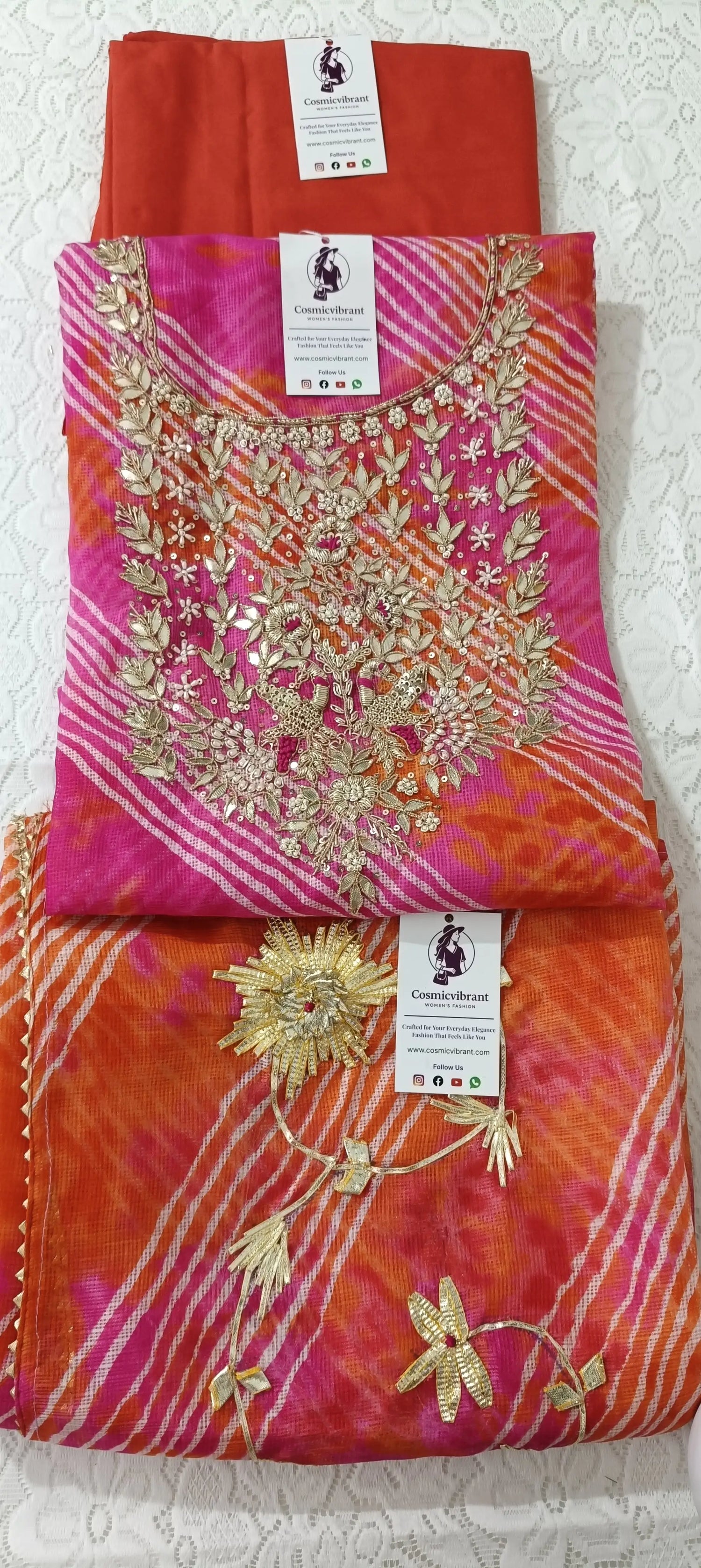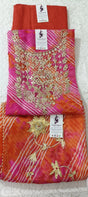 - Beautiful Pink tie-dye pattern with golden handwork motifs