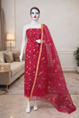 Add rich colour and graceful charm to your ethnic collection with this Wine Pink Cotton Kota Doria Unstitched Suit Set, beautifully decorated with all-over floral embroidery. The deep pink tone paired with delicate threadwork creates a striking yet elegant look, perfect for festive occasions, parties, and traditional gatherings.