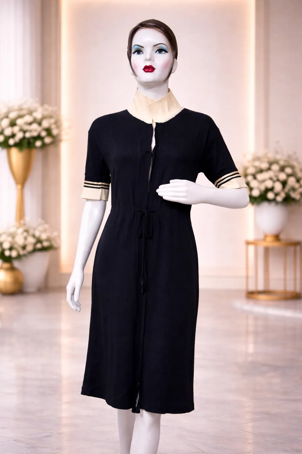 Stay stylish and cozy with this Women’s Black Knit Jacket, designed in a premium soft-knit fabric that provides comfort, warmth, and effortless elegance. The jacket features a contrast beige sailor-style collar, giving the outfit a unique, fashion-forward appeal. The striped beige sleeve cuffs add a sporty yet classy touch that elevates the overall look.